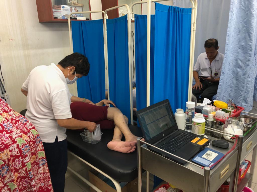 本阁从1980年开始从事赠医施药至今已届四十年。承蒙各界善 长仁翁一路来之大力支持,此活动方能持续,造福病黎。当然我们也要 感谢所有医师,配药员及登记员,不辞辛劳,每周四及周日为医药组义 务服务。 每逢星期四及星期日中午十二时至下午三时为病黎登记,并与下午一时开始由医师诊病,针灸及配药。外界登记费用为马币一元,如果需要针灸则另收费用马币二元,药费全免。本阁阁生则收登记费马币三元,其余跟外界一样收费。多年来本阁赠医施药之经费因众多善仕之支持而得以维持。目前医师人数有四位,加上登记员及配药员,一般工作人数超过十位。偶而也有中医学院之在藉学生到来帮忙及实习。赠医施药至今,造福病黎人数众多。另也间接鼓励行善,布施之义行。